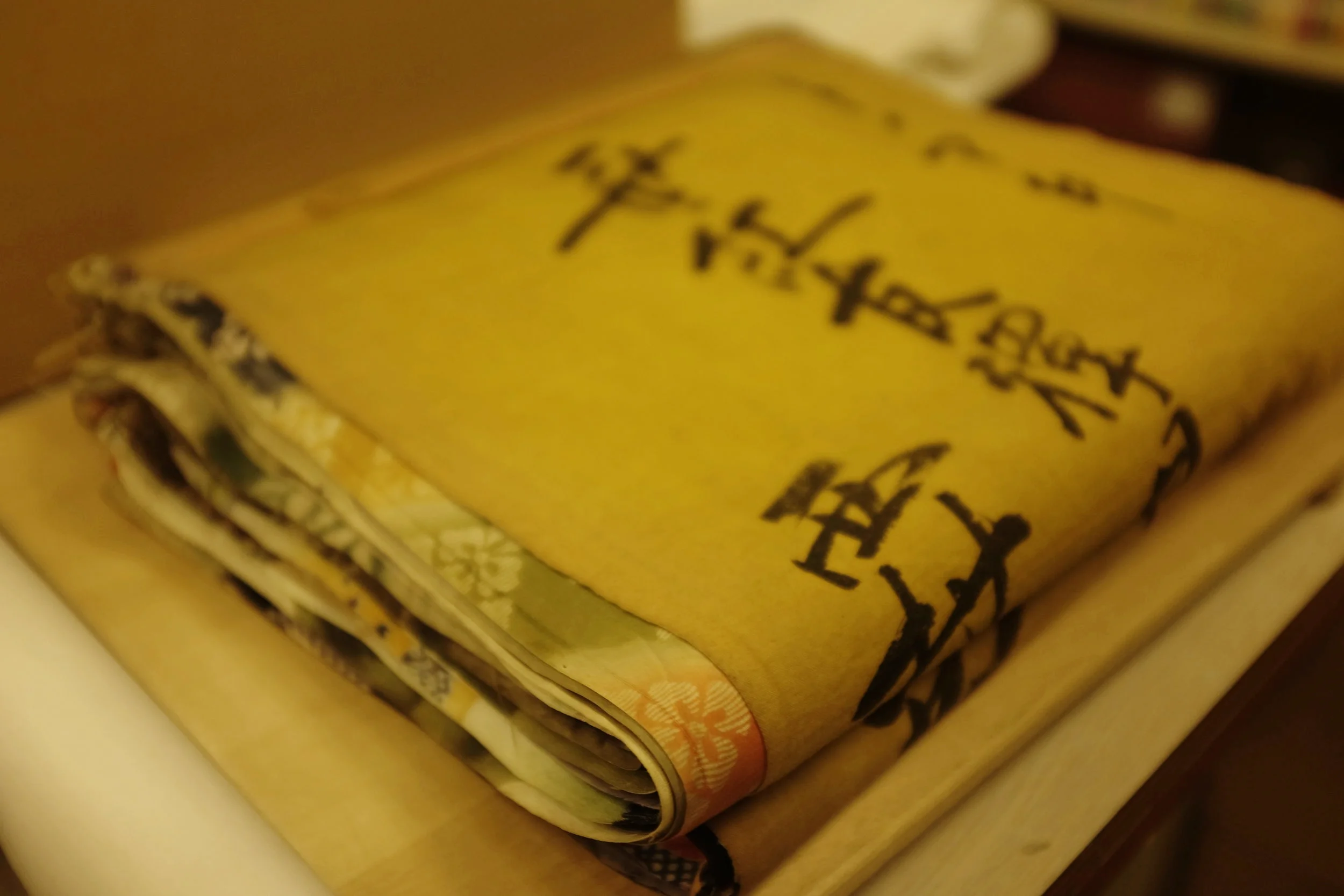 Across the opposite wall were photocopies of every fabric sample produced in the past 500 years. As their extensive archive includes over 20,000 items including 150 Kosode (a garment for both men and women) from the era of Edo to Meiji (1868 – 1912) is a valuable and large collection, they have a separate building for it’s safekeeping. So, instead, they have folders filled with these colour photocopies and several of the fabric sample bundles. These samples are bound in yellow cloth and painted with the date of that season’s group. While looking through the perfectly preserved vibrant colours, I was told they were from the early 1800s. As much as this is due to their careful covering and protection from light, it is also reflective of the period in which they were made. It was around this time that Chiso adopted the innovative synthetic dyes, making their process speedier and the colours lightfast.